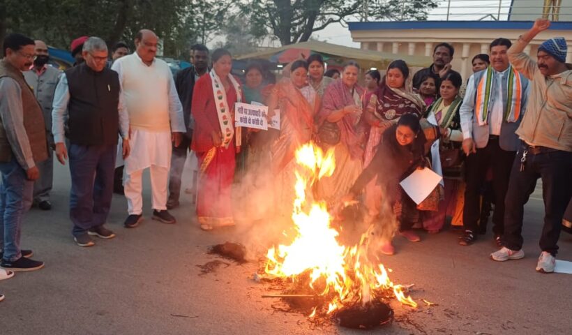 उन्नाव रेप केस को लेकर महिला कांग्रेस का विरोध प्रदर्शन, भाजपा का पुतला दहन
